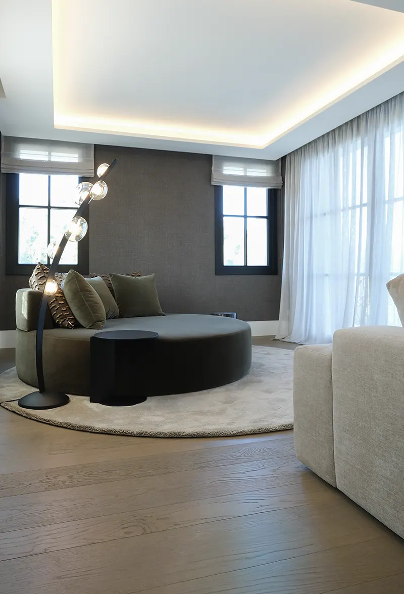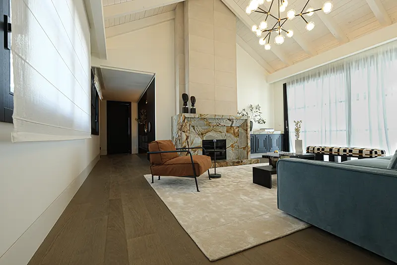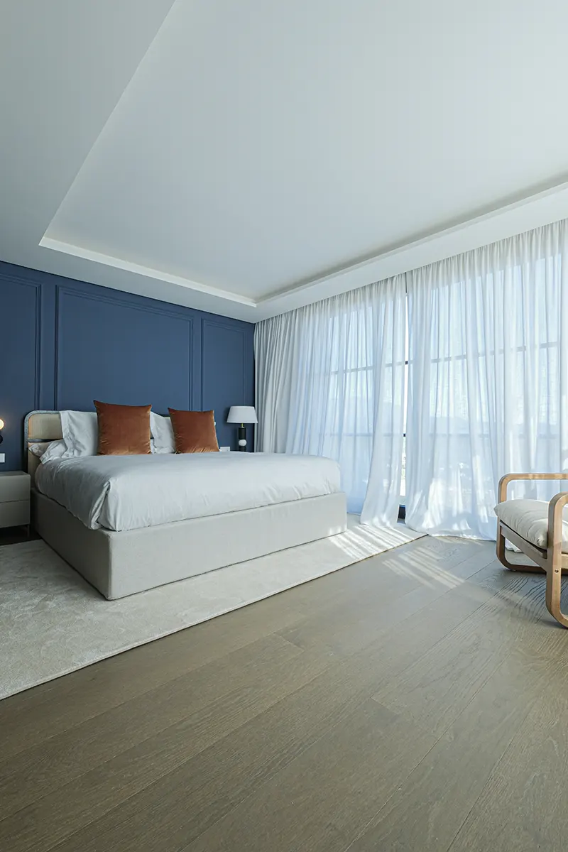 MATERIAL: Tarima pegada Surco multiformato y en espiga de 140mm color Zenit.